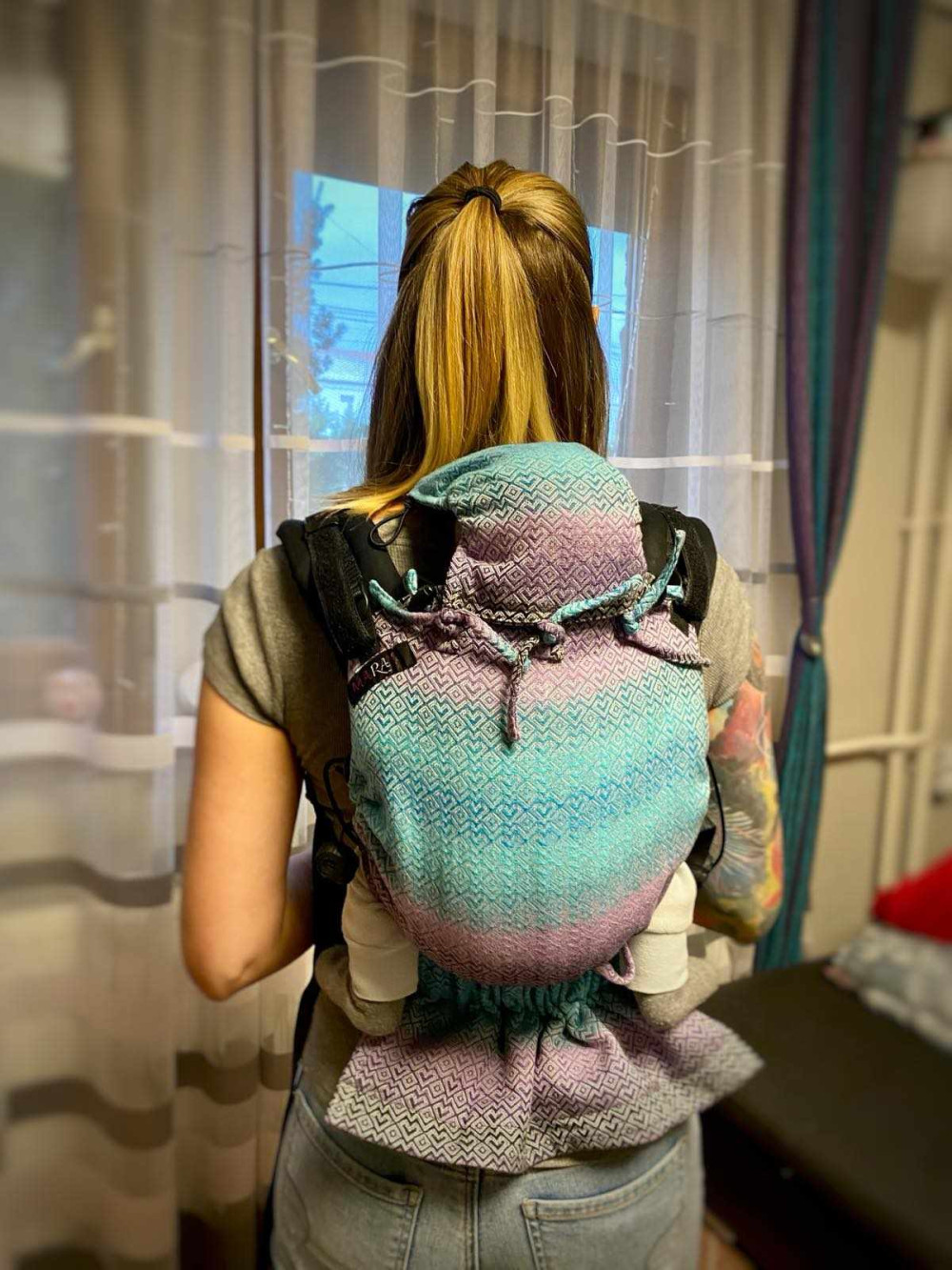- apakompatibilis, vállpántja két helyen állítható, derékpántjában másfél méter heveder van, különböző testalkatú szülők is hordhatják